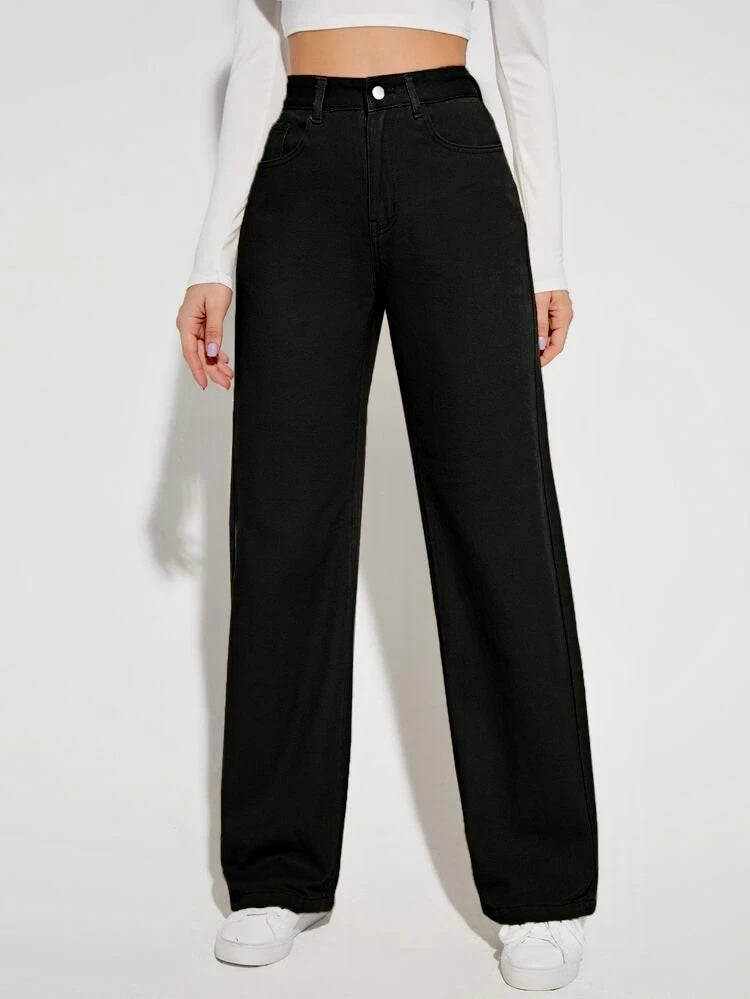 Black Wide Leg High Rise Jeans