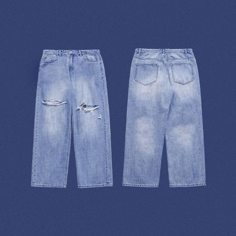 Blue Ripped Wide Leg Jeans