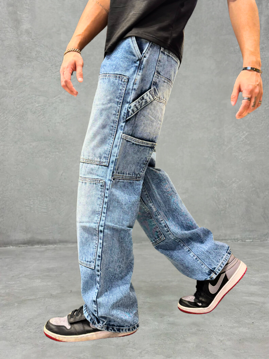 These Blue Stone Wash Carpenter Baggy Jeans are the perfect blend of style and functionality. With a trendy stone wash finish, they offer a versatile addition to your wardrobe. The carpenter style adds a touch of practicality, making them ideal for any daily activity. These jeans are sure to provide comfort and durability, all while keeping you looking effortlessly cool.