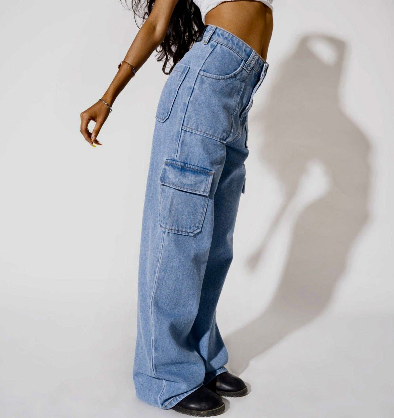 Discover our highly coveted Boyfriend Cargo Wide Leg Denims. Scientifically crafted with a high waist for the perfect fit, these denims are what you’ll want to wear day after day.
