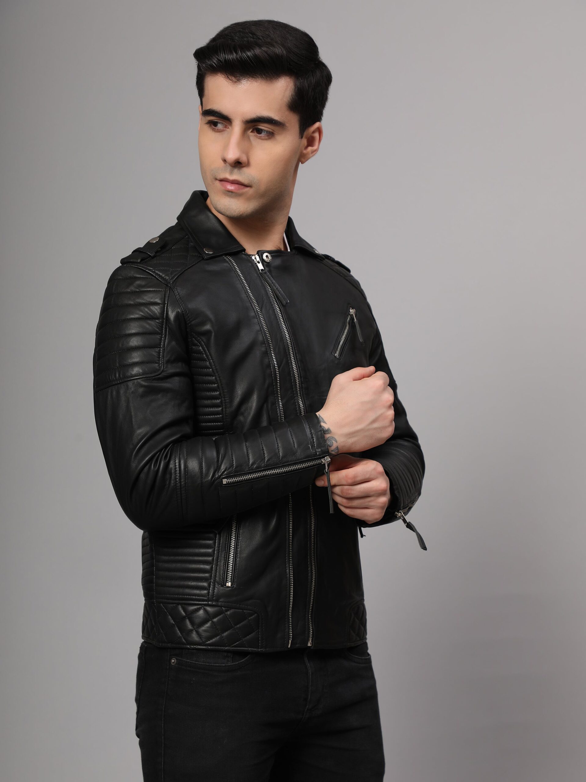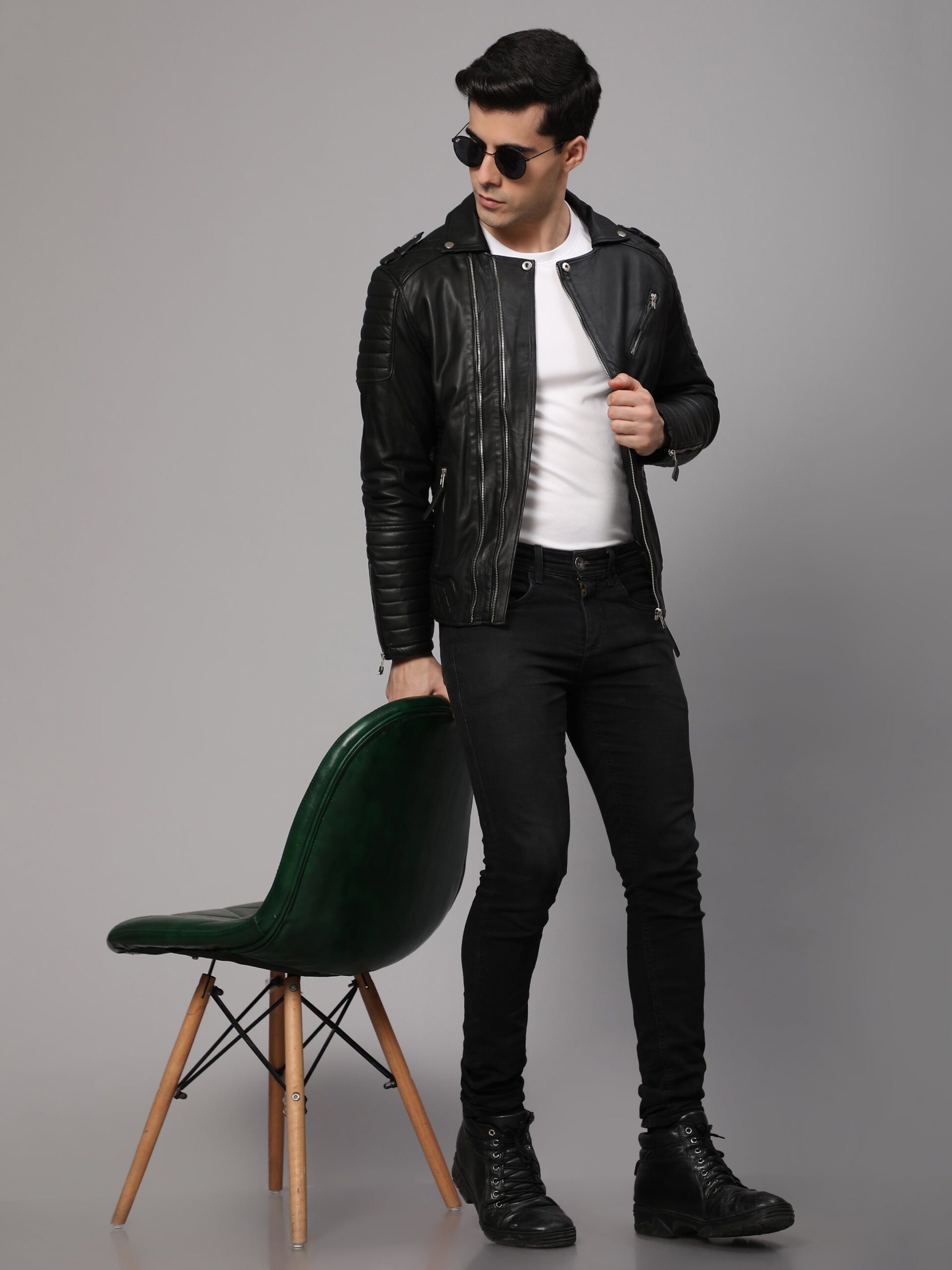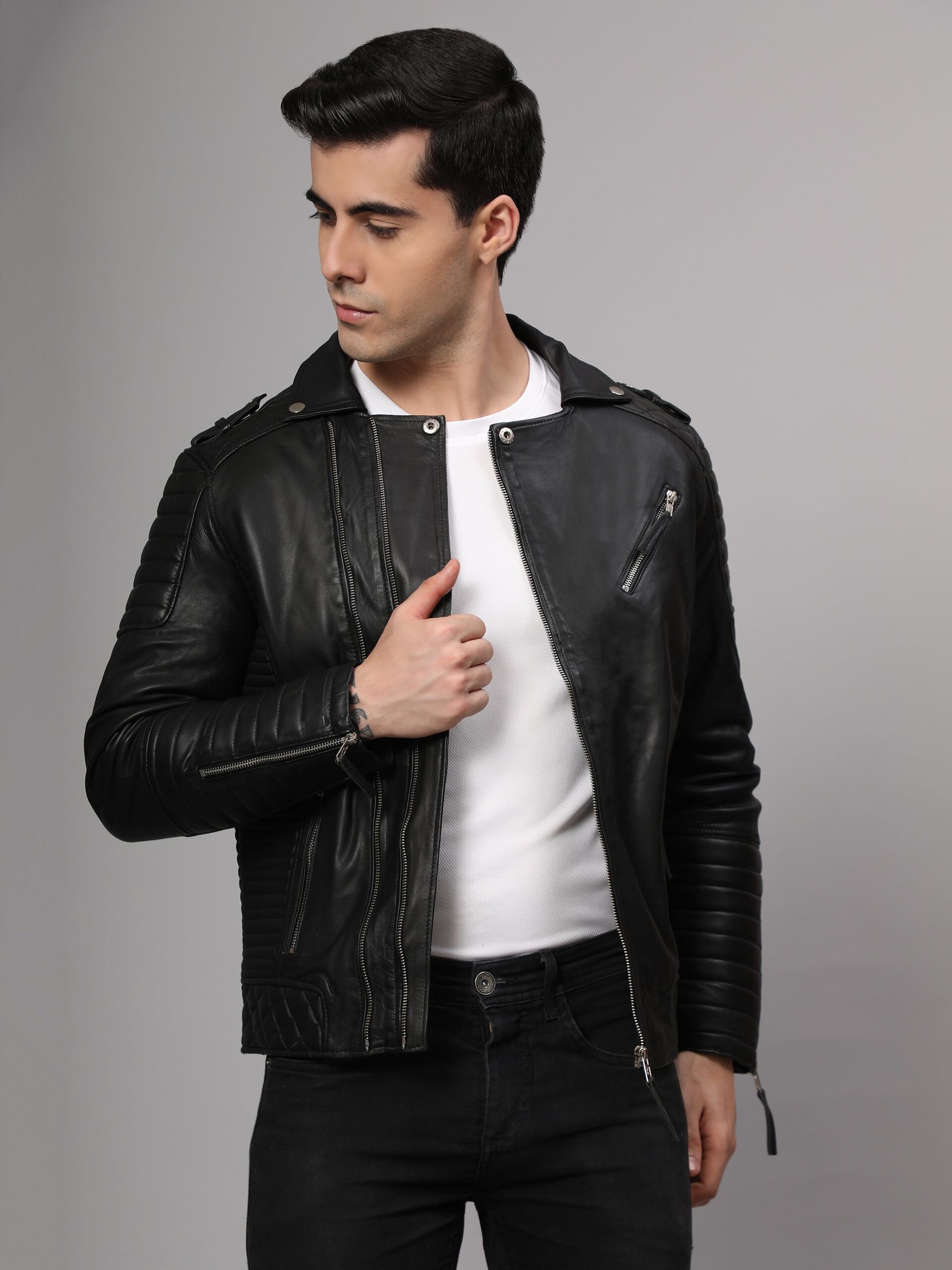Introducing the Charmshilp Men’s Biker Leather Jacket, handcrafted from 100% high quality real sheepskin leather. This jacket is designed to offer both durability and style for the modern biker. The luxurious texture of the leather is coupled with meticulous attention to detail in the stitching and hardware, making this jacket a timeless addition to any wardrobe. Whether you’re hitting the open road or heading out for a night on the town, the Charmshilp Men’s Biker Leather Jacket is the perfect combination of rugged and refined. Make a bold statement with this iconic piece that.