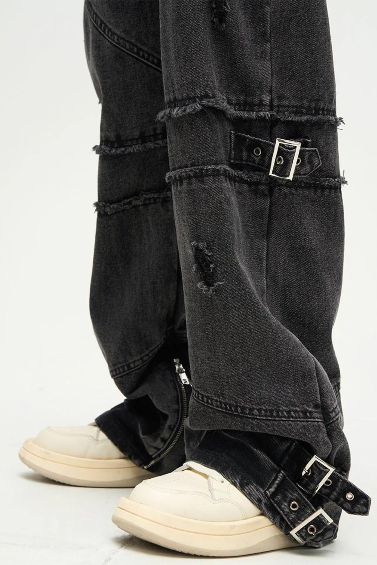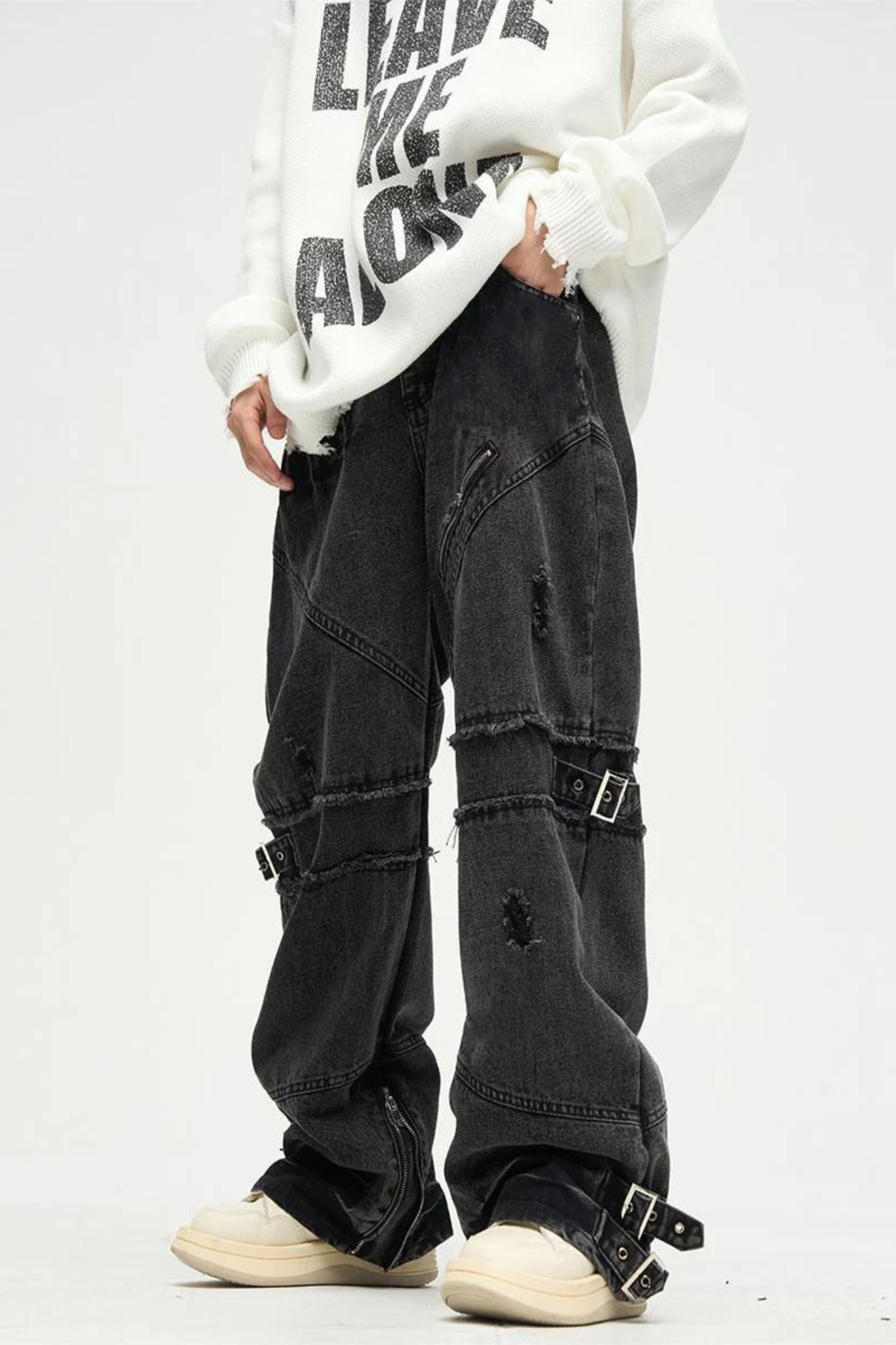Expertly crafted with a distressed design and unique buckle details, our Destroyed Buckled Baggy Jeans are a must-have for any fashion-forward individual. Made with high-quality materials, these jeans offer both comfort and style. Upgrade your wardrobe with these statement jeans.