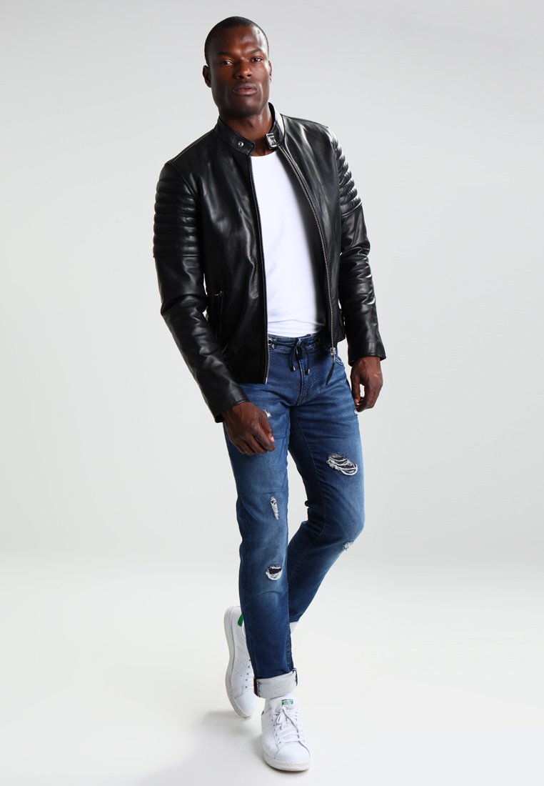 Boost your style factor with this black jacket from Charmshilp. Made from leather, this quilted jacket is designed with a band collar and full sleeves. Pair this regular fit jacket with lightly washed jeans and low-top sneakers.