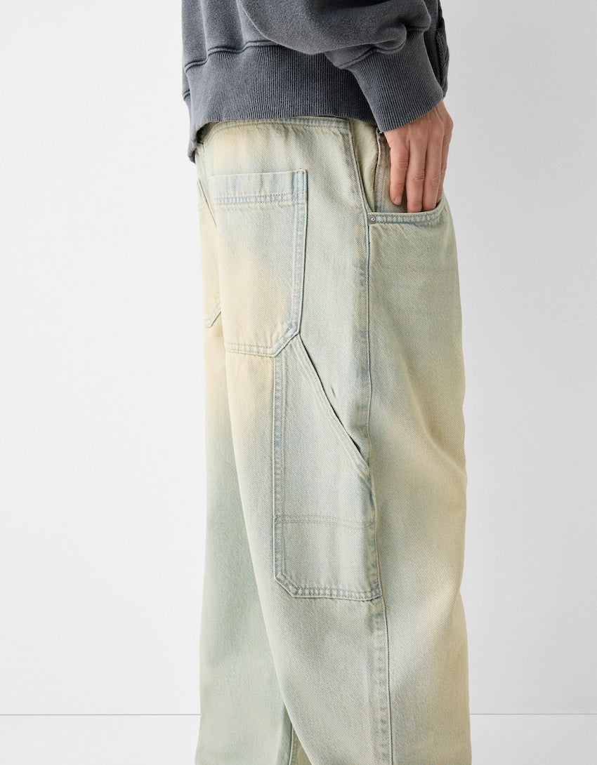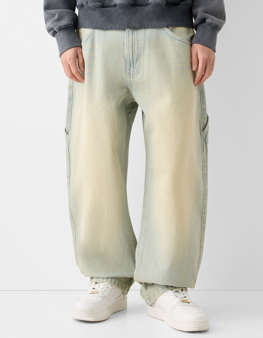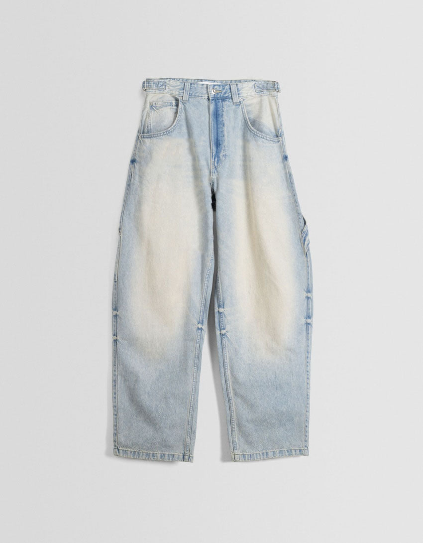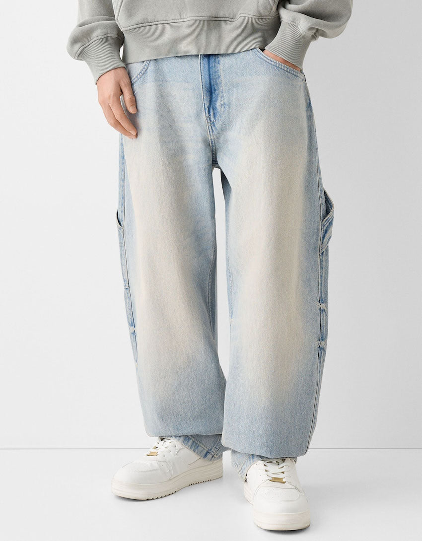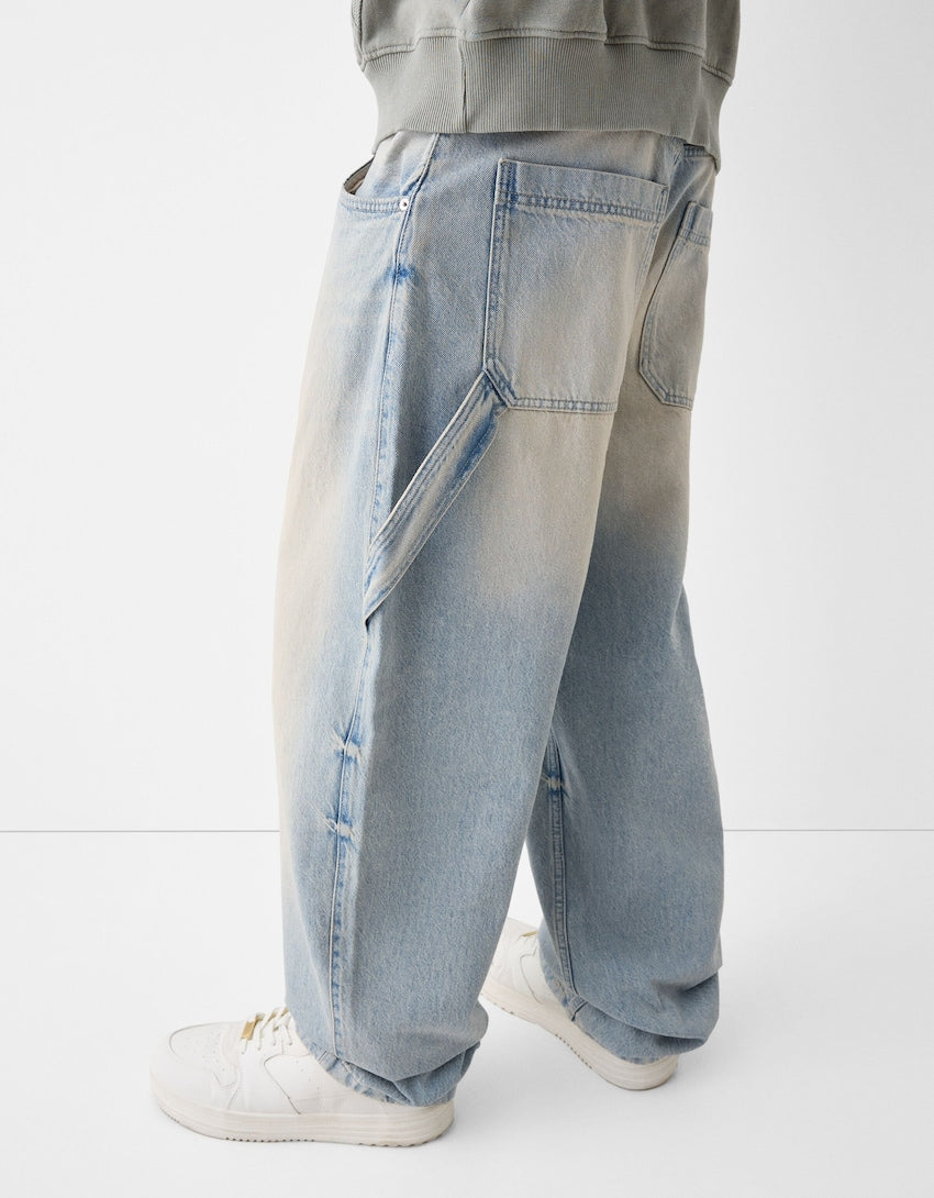 Indulge in the luxury of our Faded Balloon-Fit Carpenter Jeans. Made with premium materials, their stylishly faded finish and balloon fit offer a unique blend of comfort and fashion. Perfect for elevating your everyday look with a touch of sophistication.