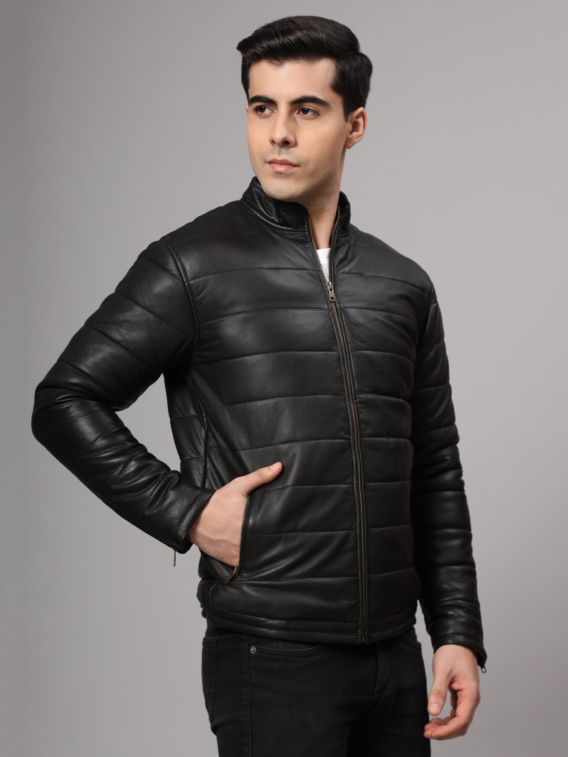 Introducing our classic Boomer Leather Jacket, crafted from 100% real leather for a timeless and durable addition to your wardrobe. This jacket features a sleek, minimalist design with a padded for added warmth and protection. The black color makes it versatile and perfect for any casual or edgy outfit. With its high-quality construction and soft, supple feel, this jacket is guaranteed to become a favorite in your collection. Whether you’re hitting the streets or running errands, our Black Sheepskin Leather Jacket is the perfect choice for effortless style and comfort.