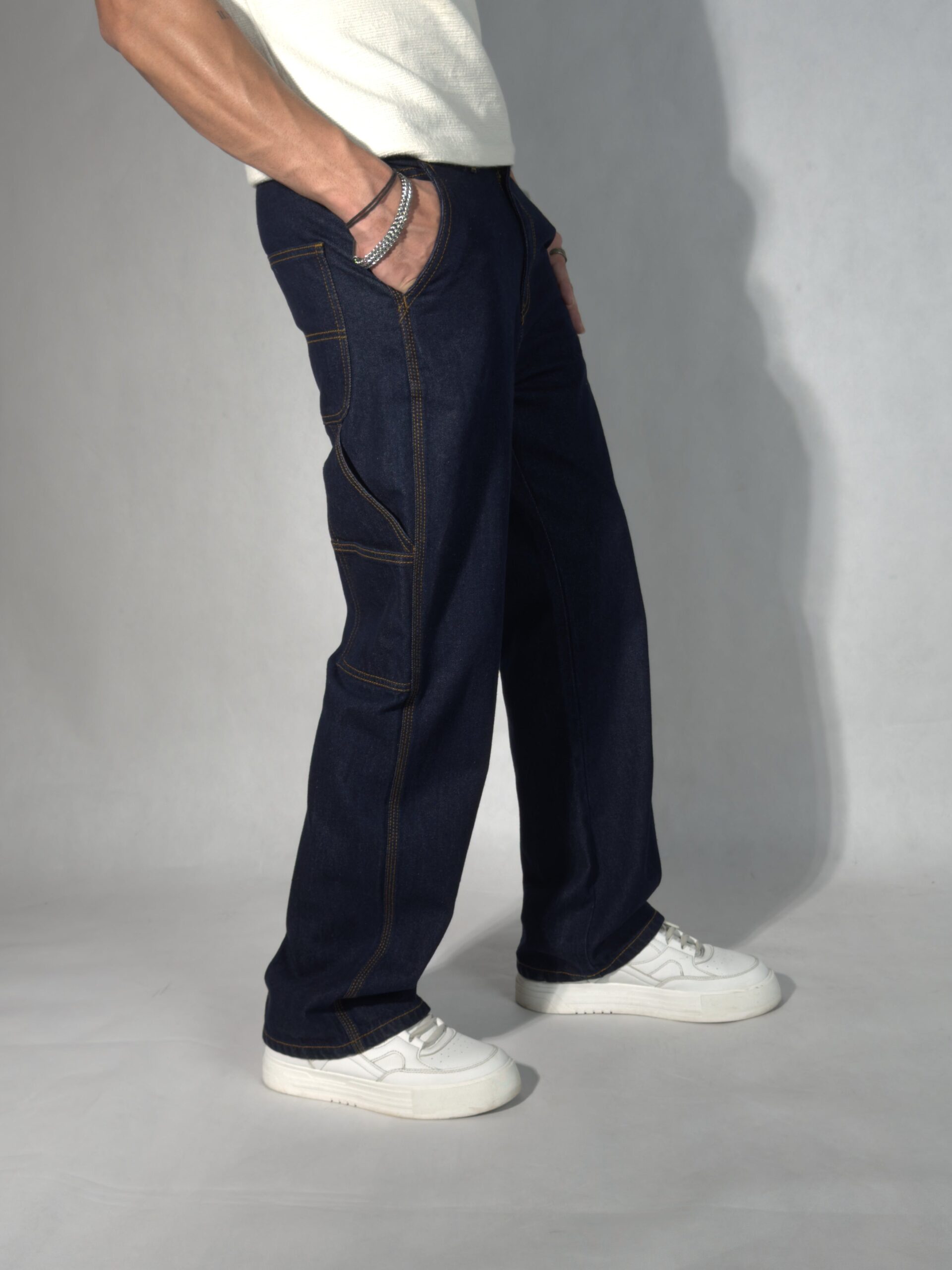 These carpenter jeans merge utility function with clean, structured design. With side utility pockets, a classic hammer loop, and a roomy relaxed fit, they nod to traditional workwear while staying effortlessly street-ready.