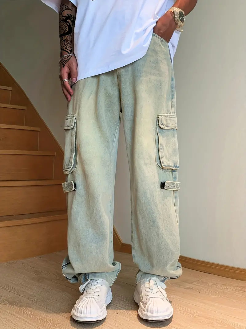 Upgrade your street style with these men’s casual distressed baggy jeans.