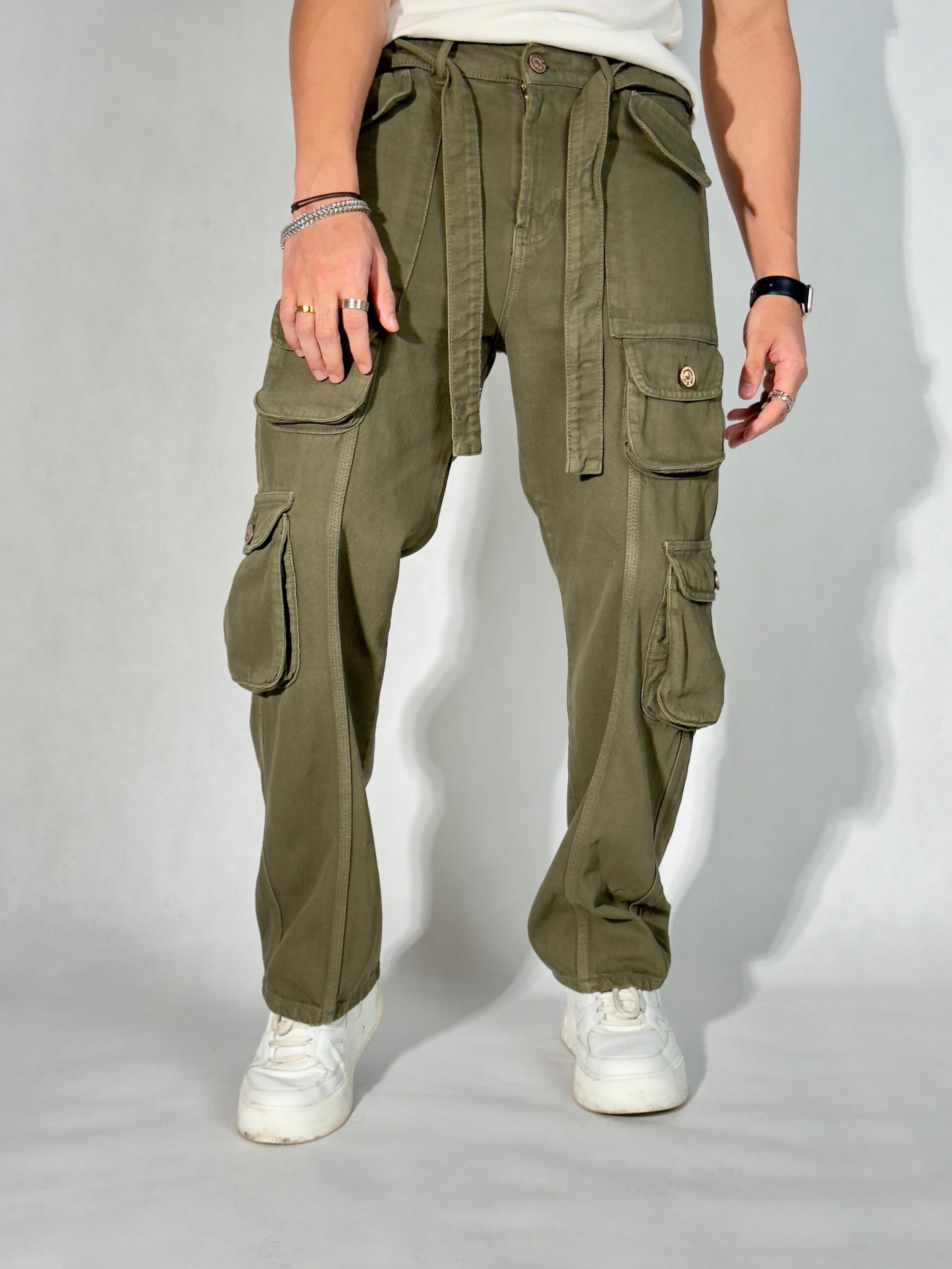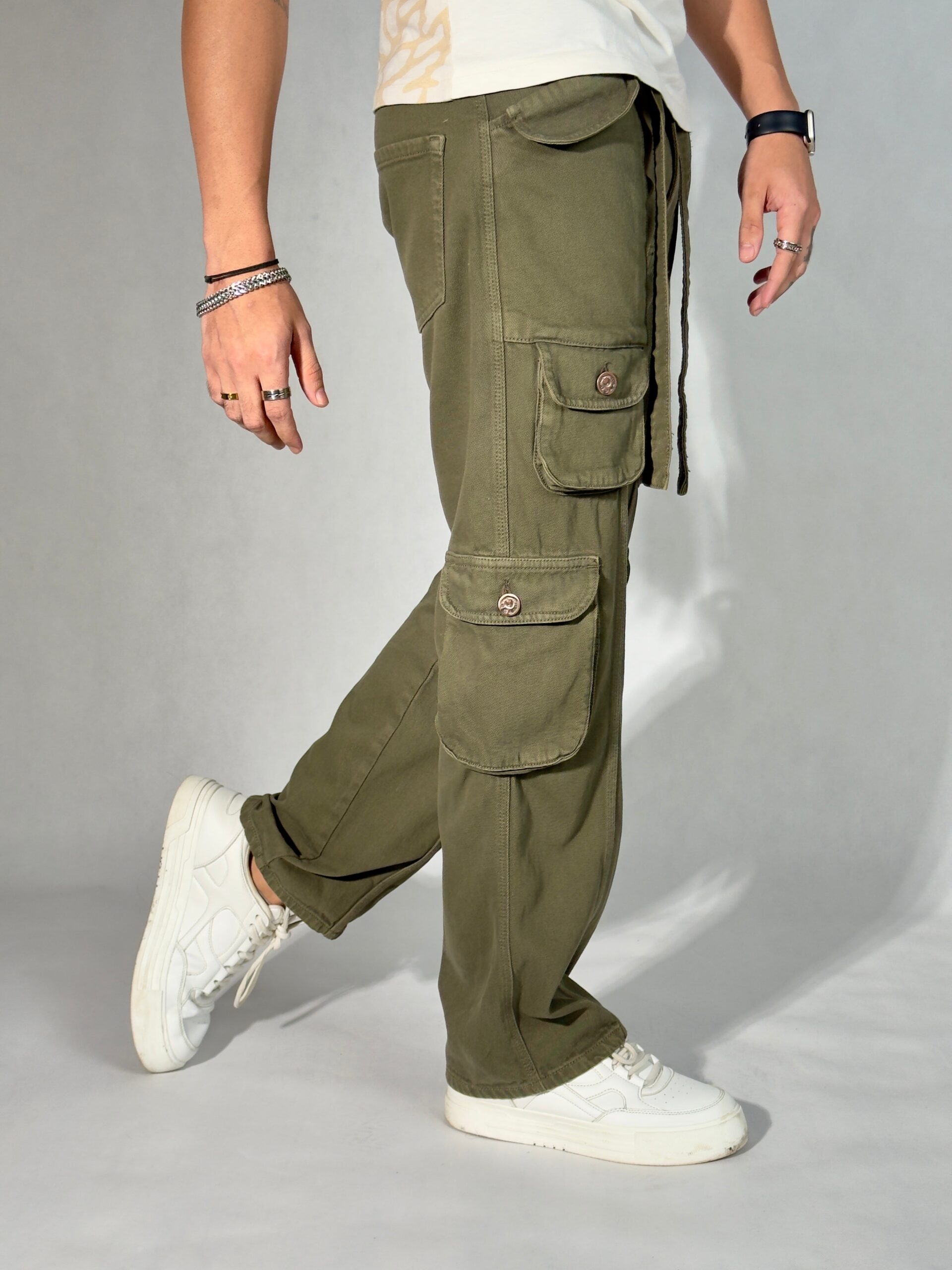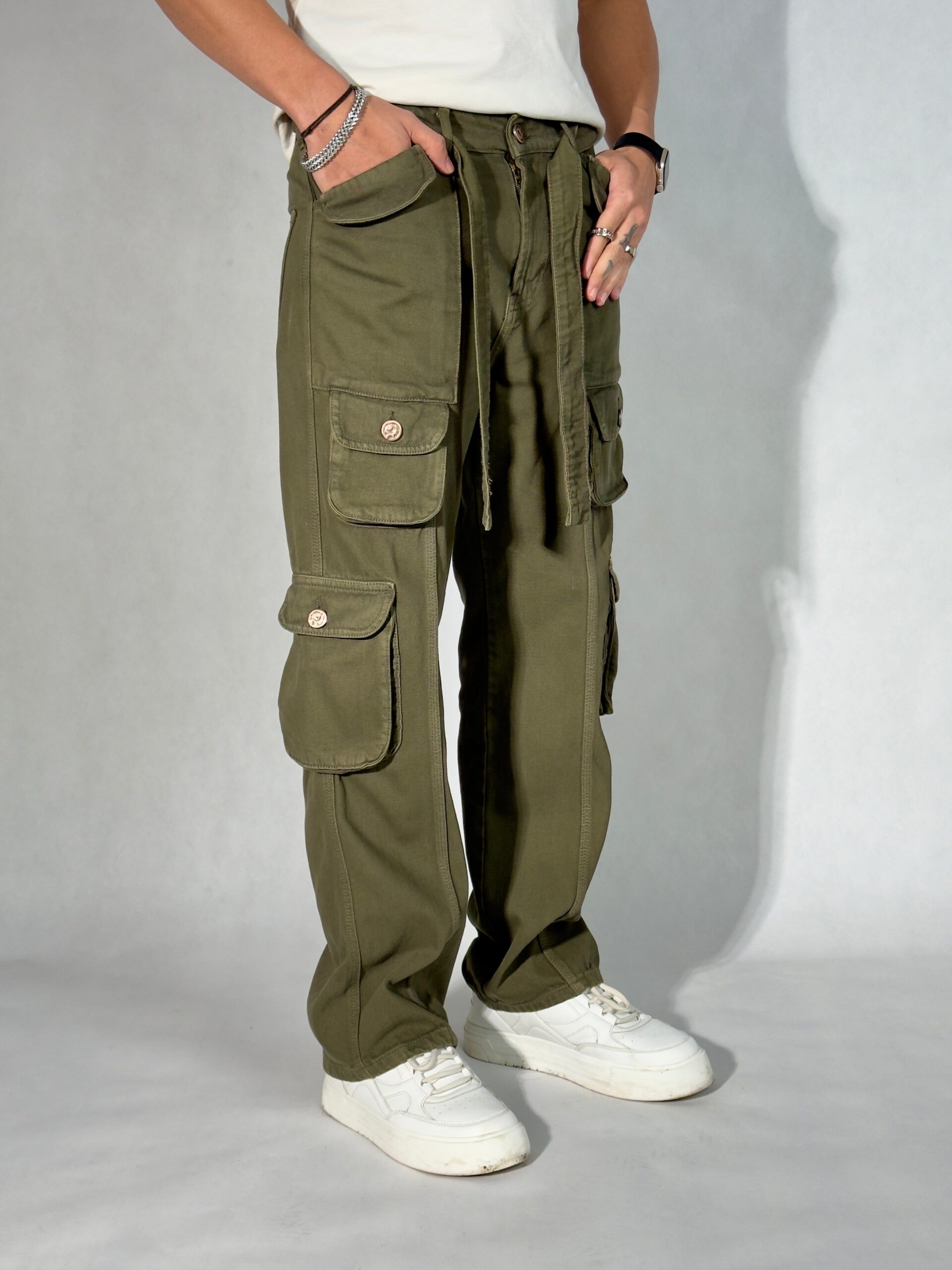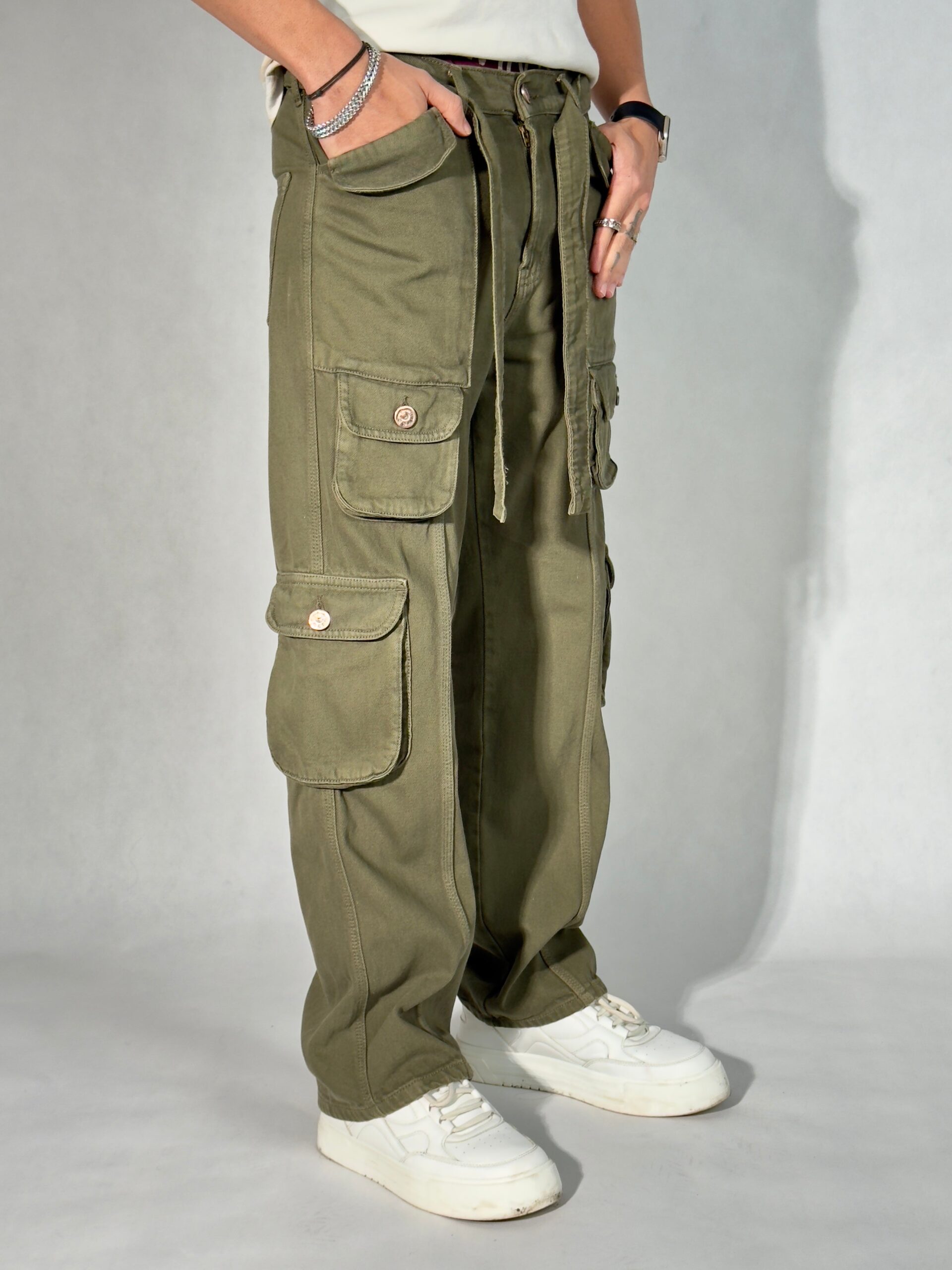 The Olive Green Casual Cargo Baggy Jeans fuse rugged functionality with effortless everyday wear. Designed in a relaxed, baggy silhouette, they feature spacious utility-style pockets that nod to classic cargo design.