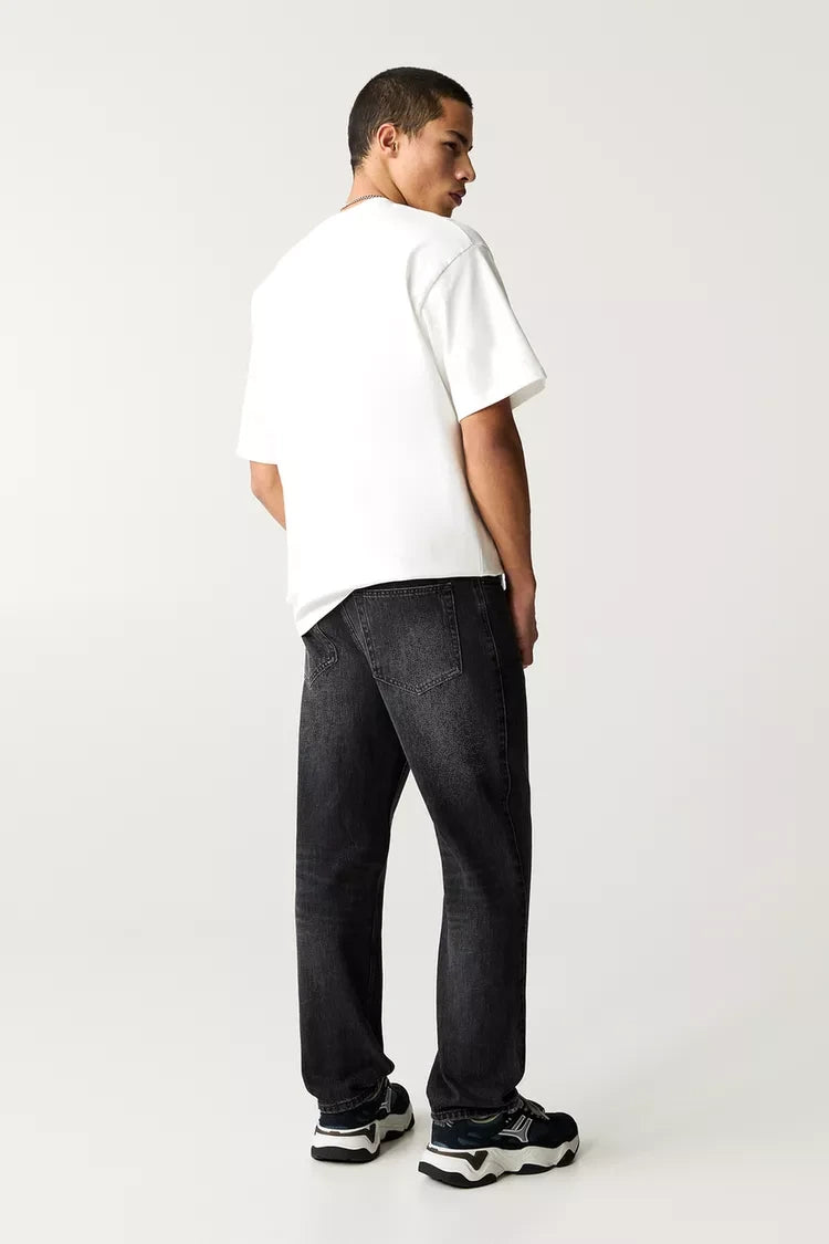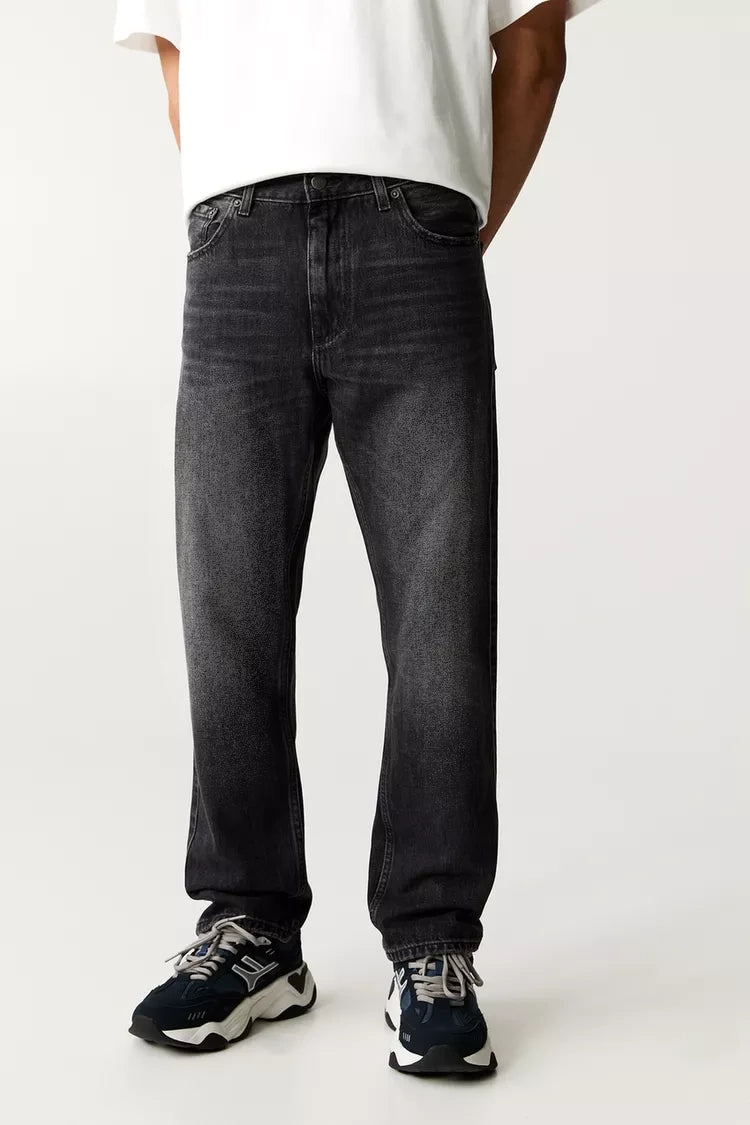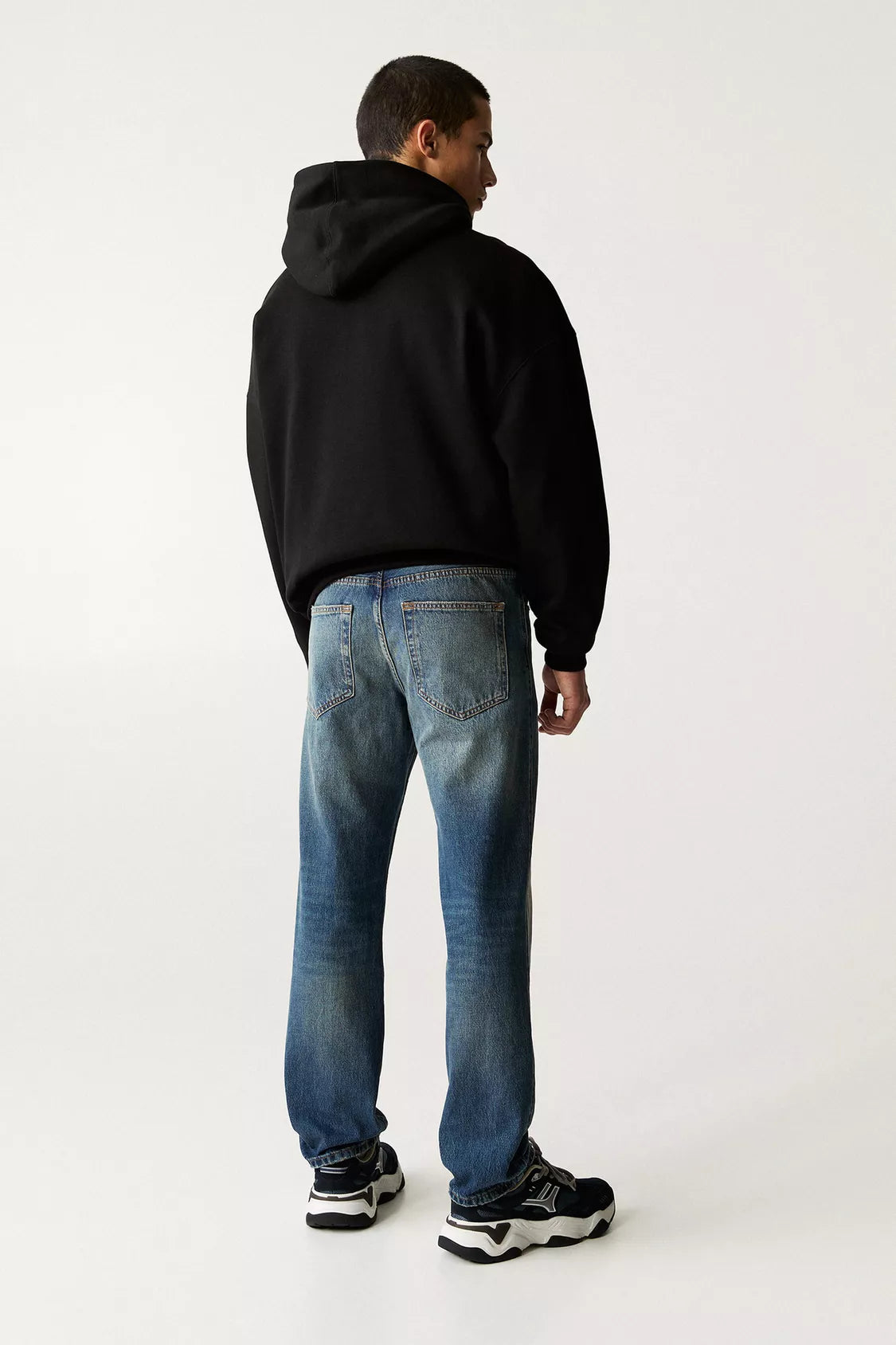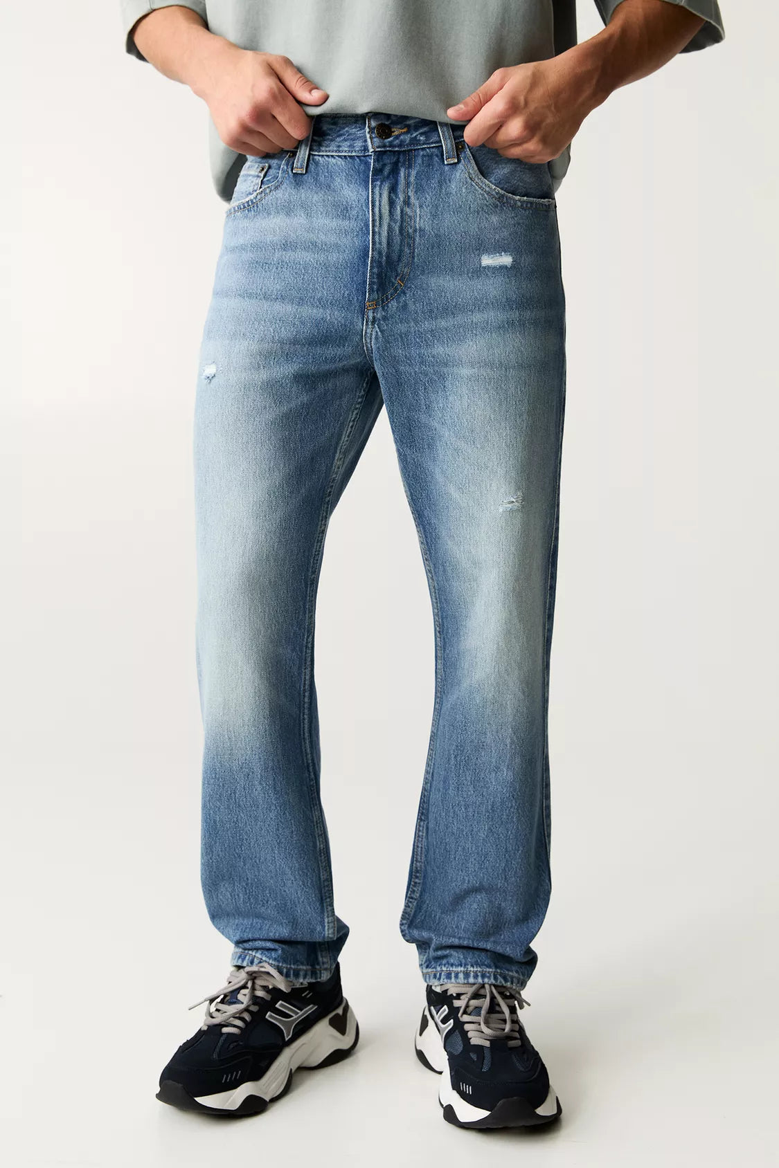 These light-wash jeans channel a vintage vibe with subtle abrasions and gentle fading down the thigh. Built in a rigid, heavyweight denim with no stretch, they deliver a structured silhouette with a classic straight-leg fit—ideal for off-duty style with attitude.