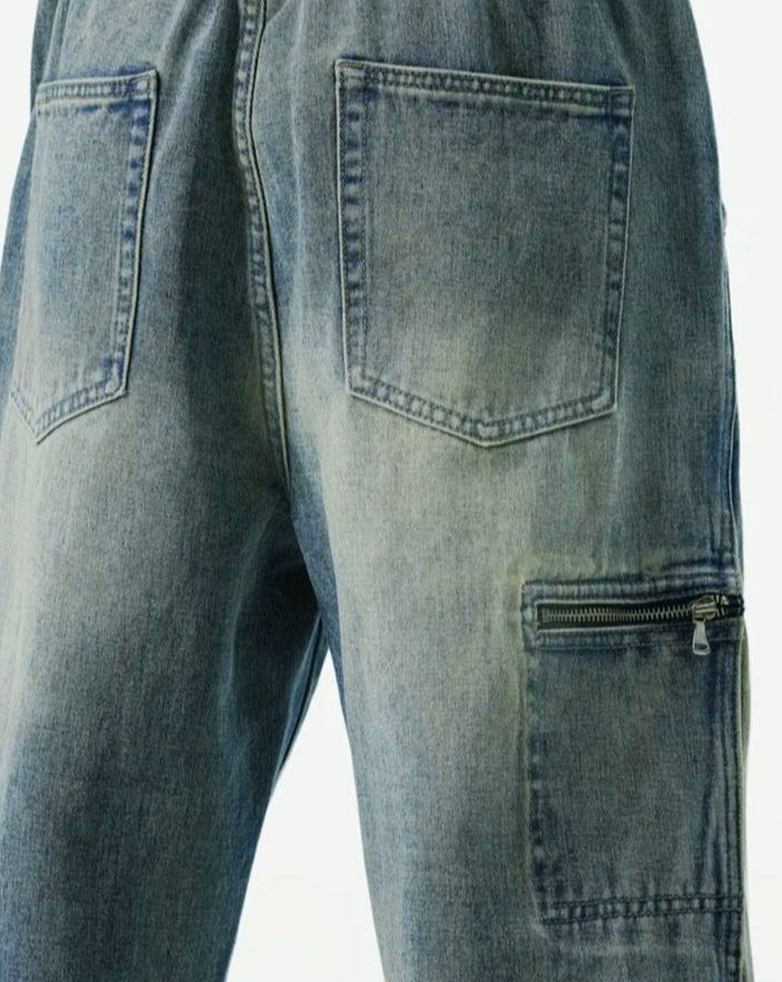 Designed with a relaxed fit and a modern utility pocket, these jeans bring a functional edge to classic denim. Faded and worn-in for everyday ease, they’re built for both movement and attitude.