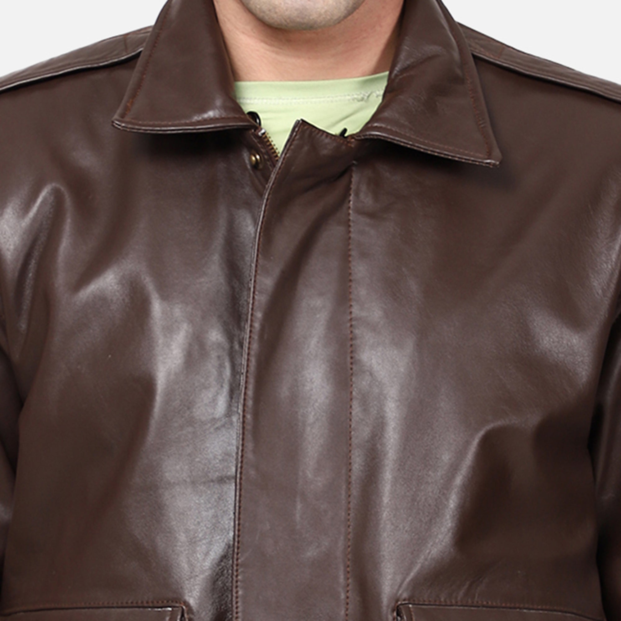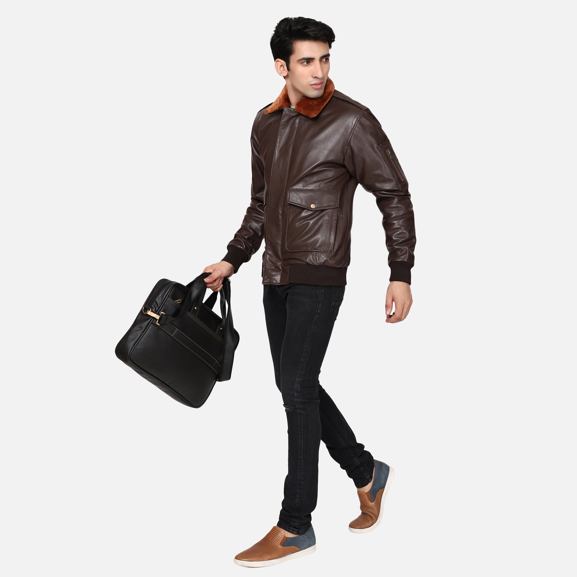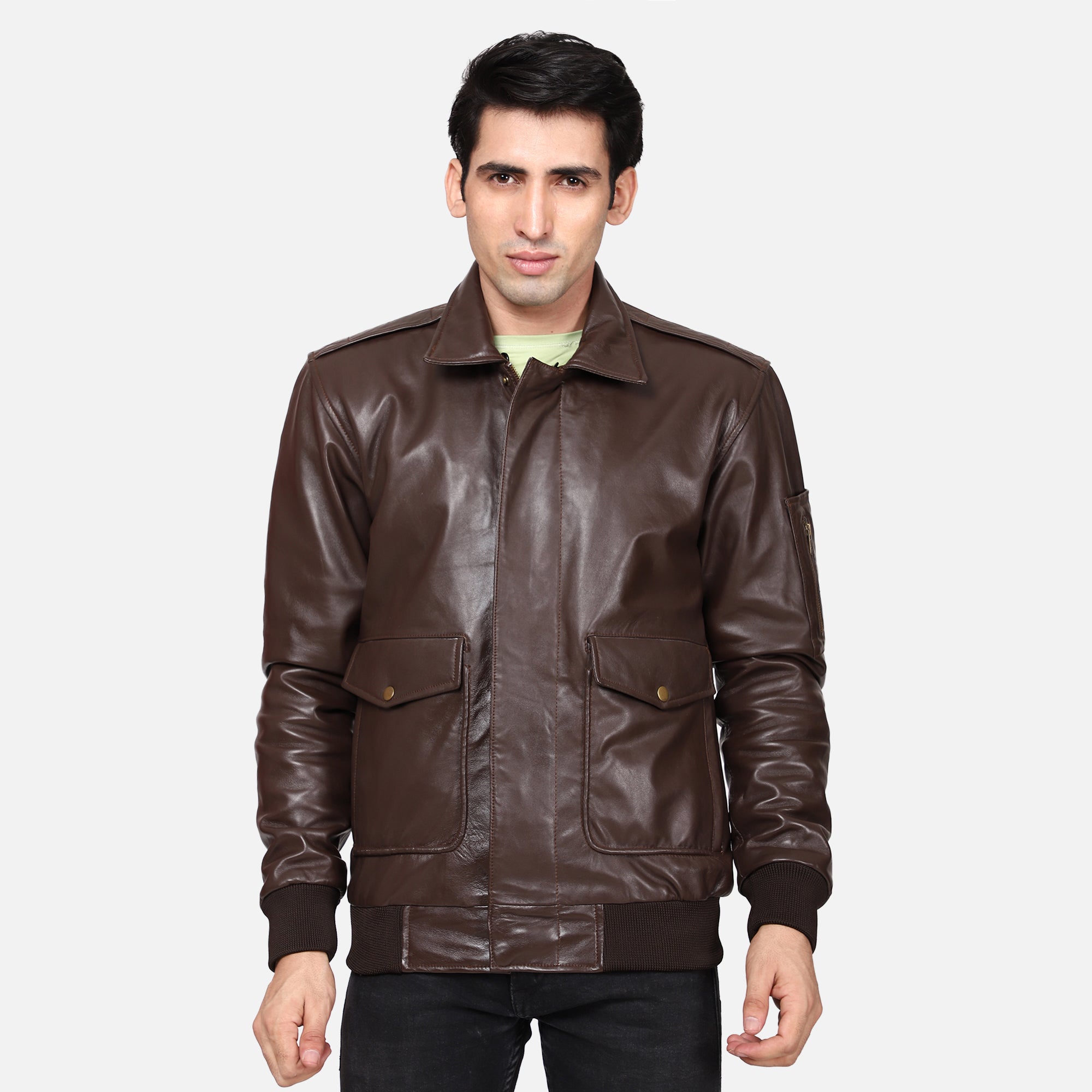 Elevate your style with our Vikram Bomber Jacket. Made with genuine leather and a shearling collar, this jacket is both stylish and warm. Perfect for any occasion, it pairs well with any outfit and is sure to turn heads. Experience comfort and sophistication with our Vikram Bomber Jacket.