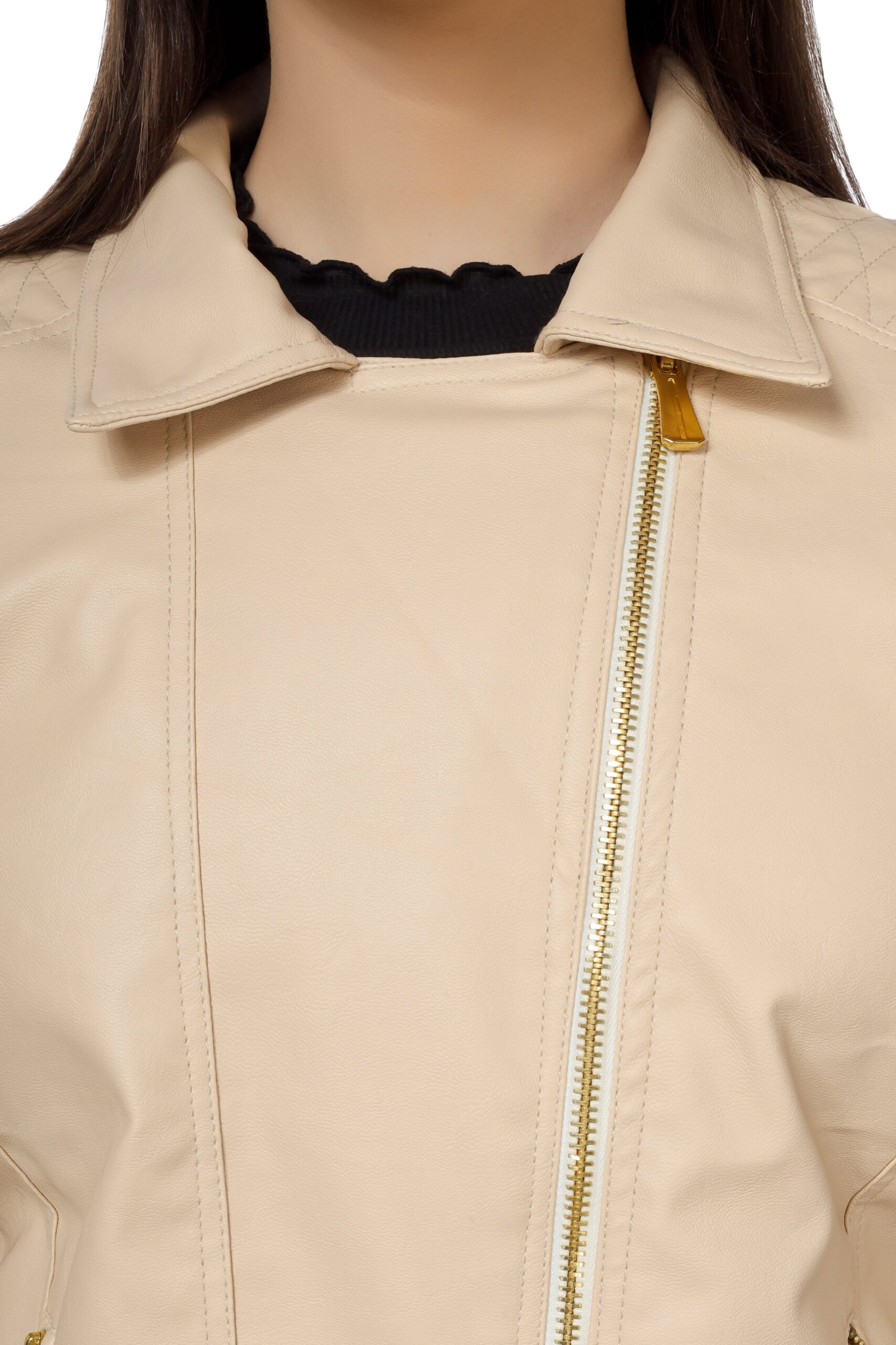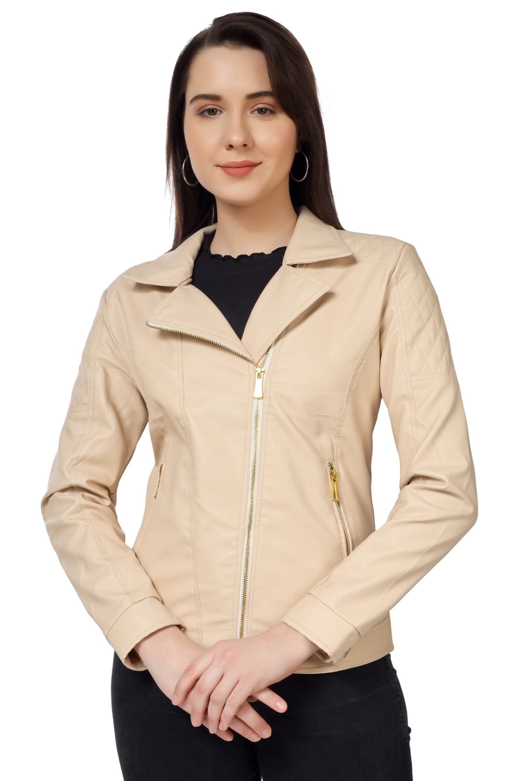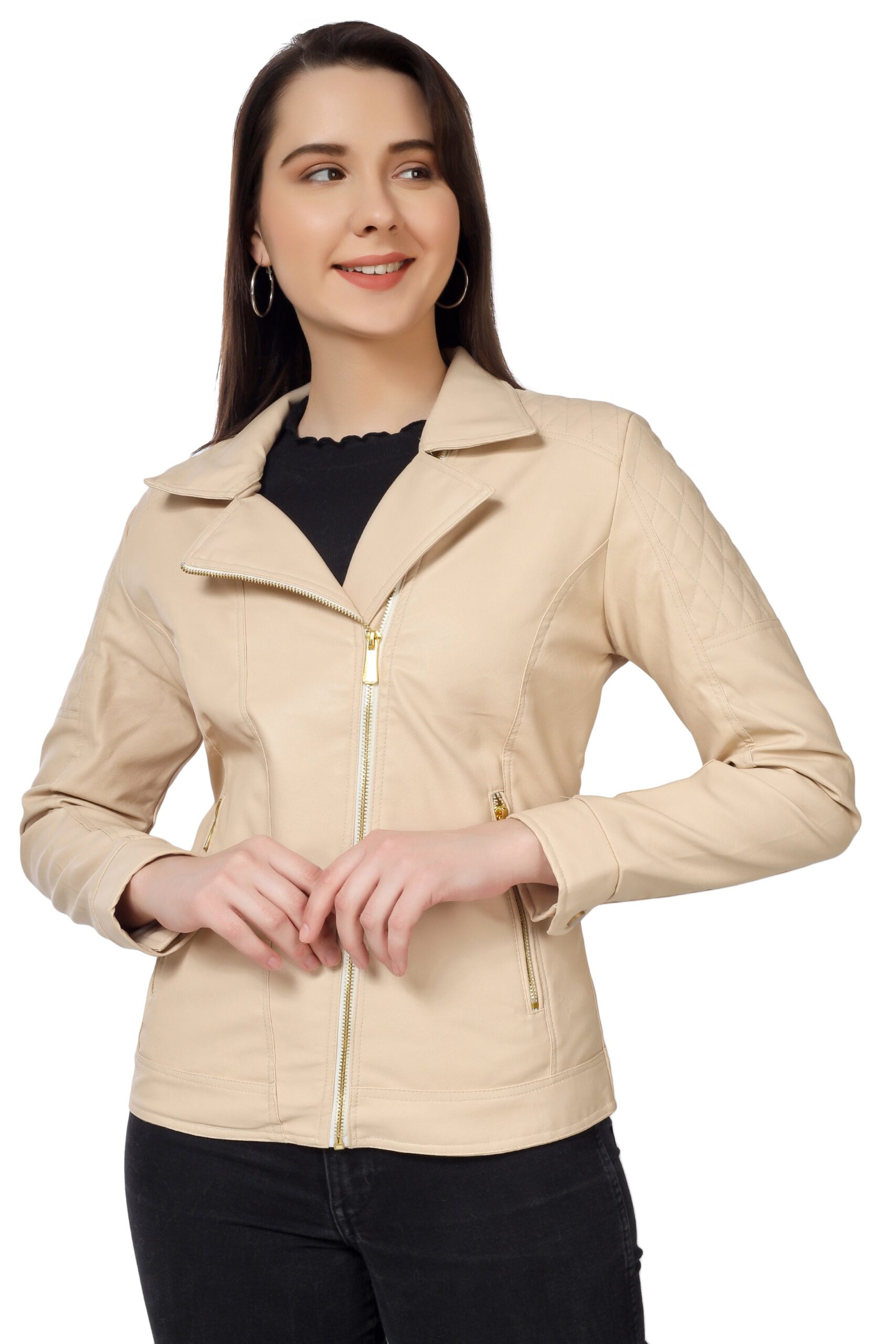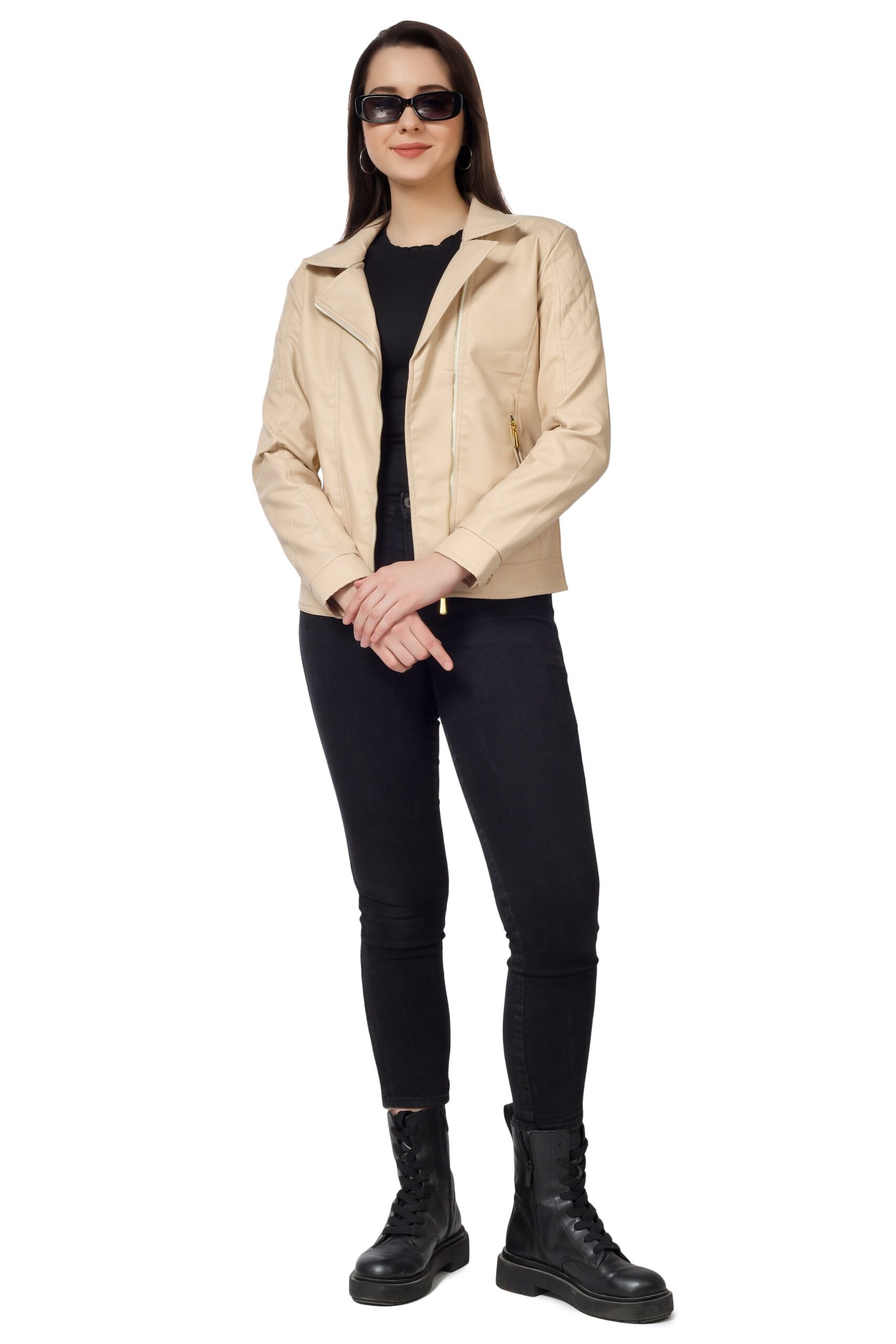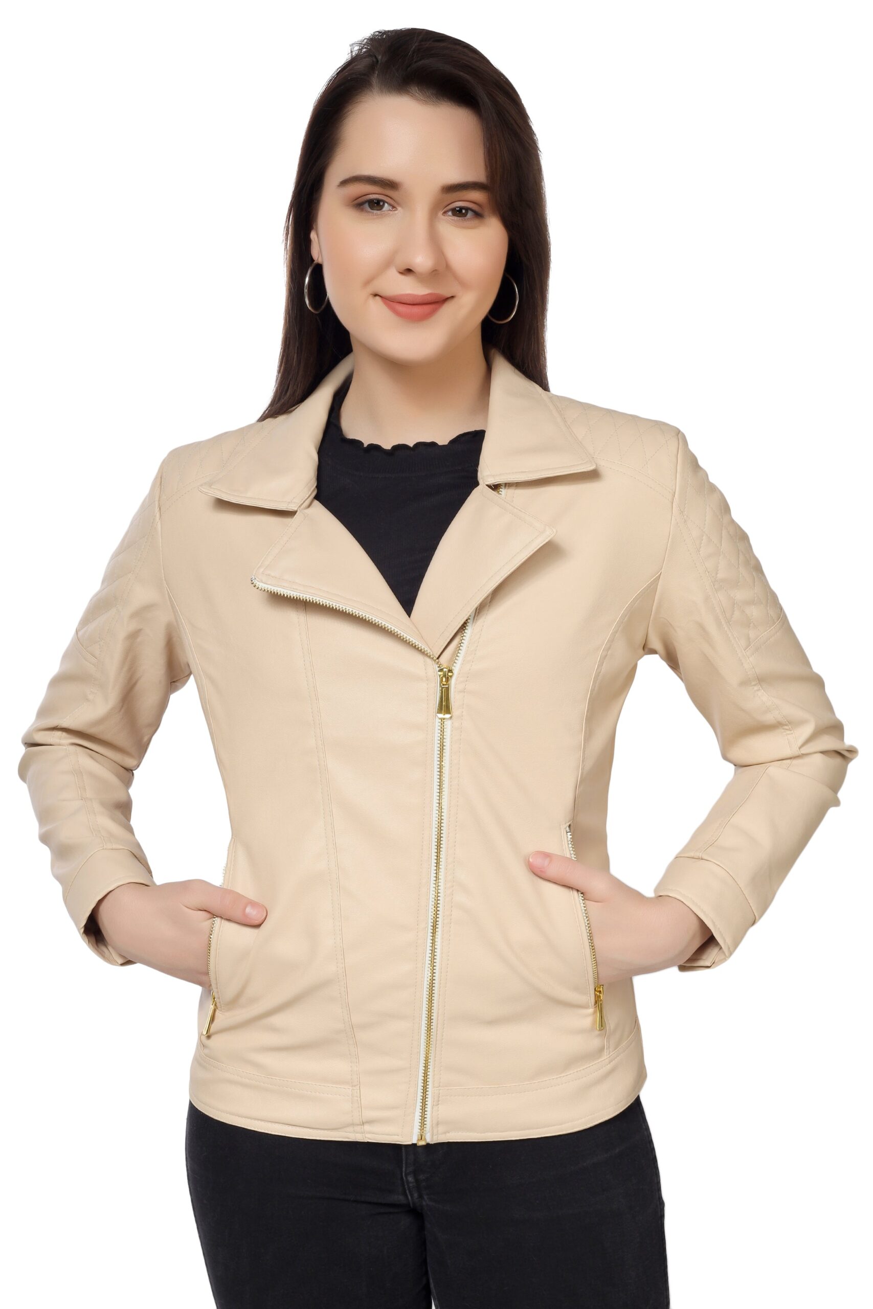 Women’s Biker Jacket In Genuine Faux Leather :- Charmshilp