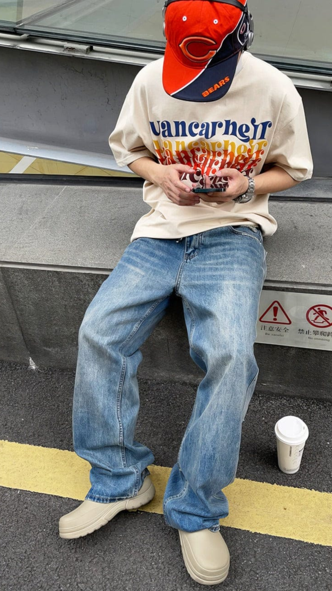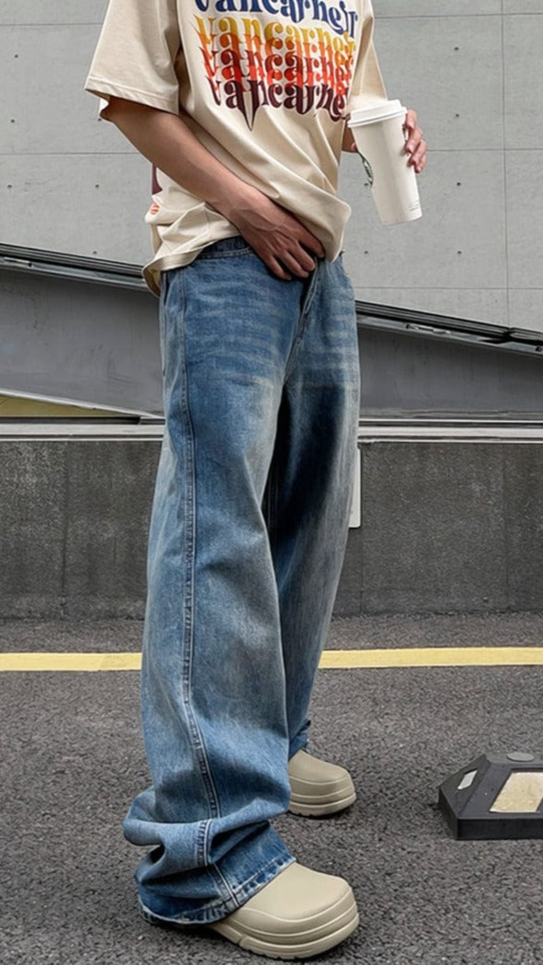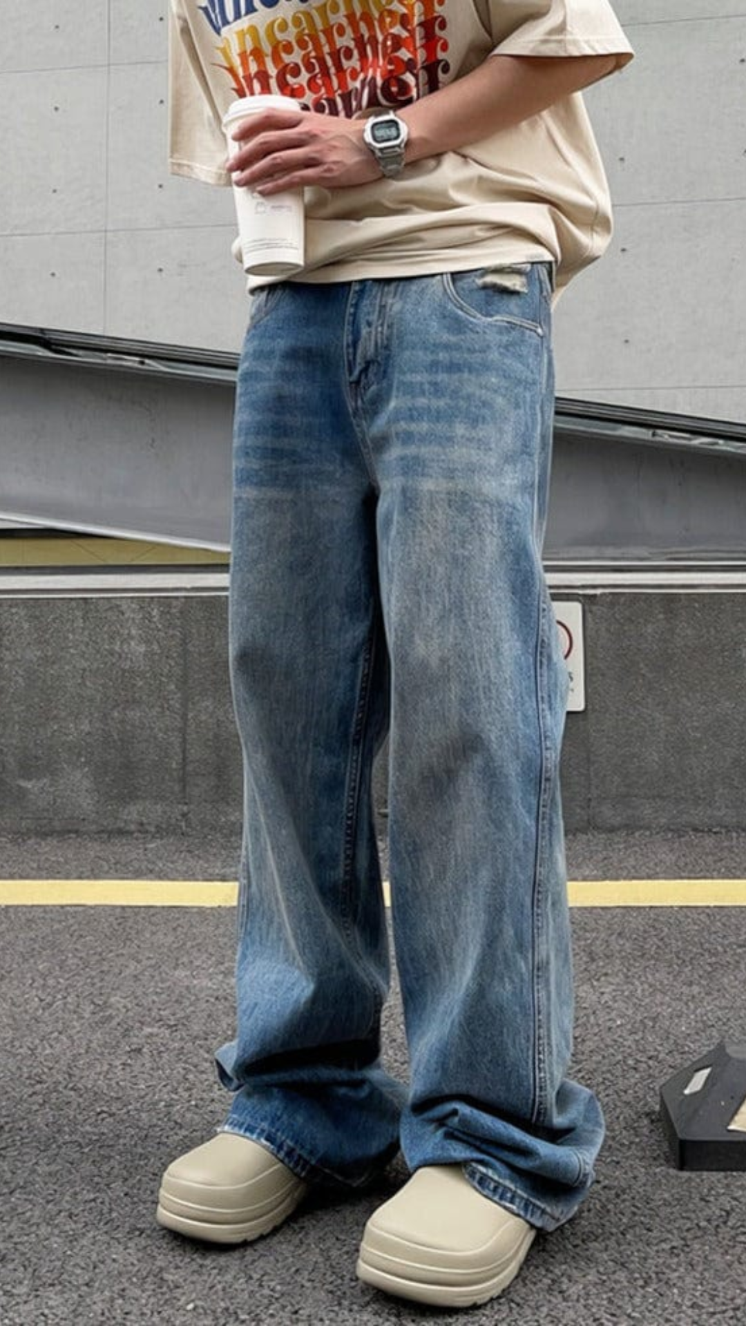 Be the first to review “Worn Blue Whisker Wash Loose Straight Fit Jeans”
